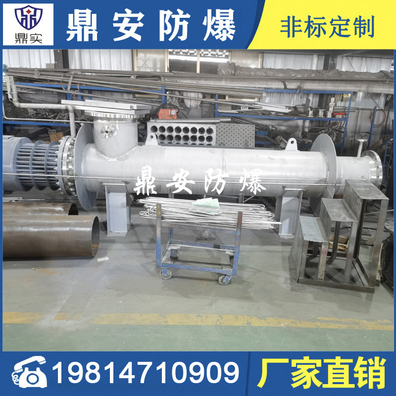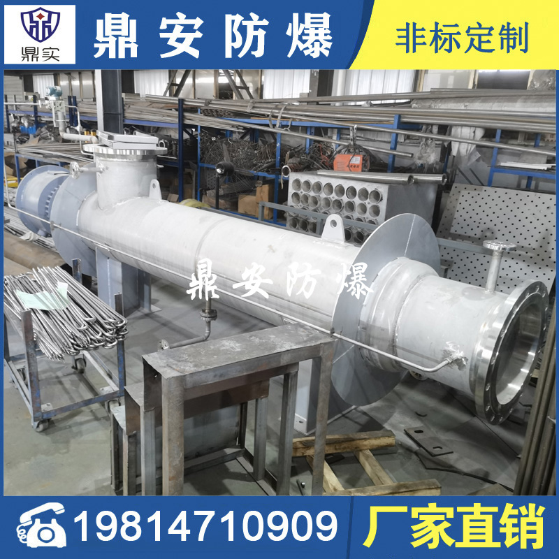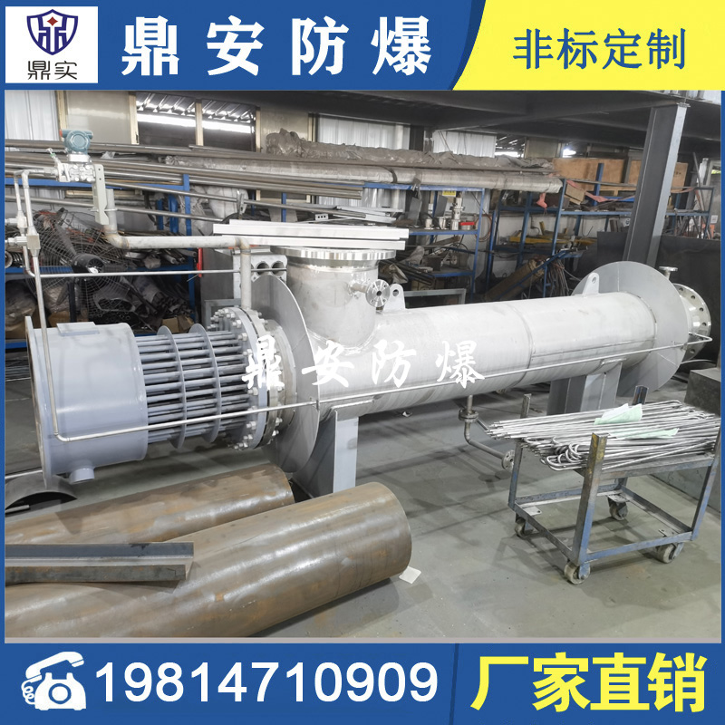 3、應用范圍廣,適應性強; 軸封電加熱器可適用于防爆或普通場合,它的防爆等級可達C級,它的耐壓可達25Mpa。并可根據用戶需要筒體采用立式或臥式不同的安裝方式。